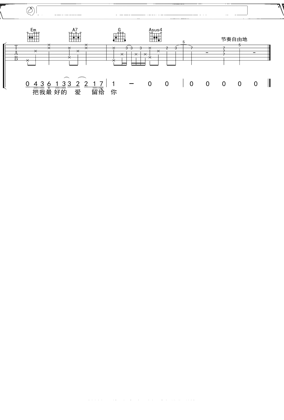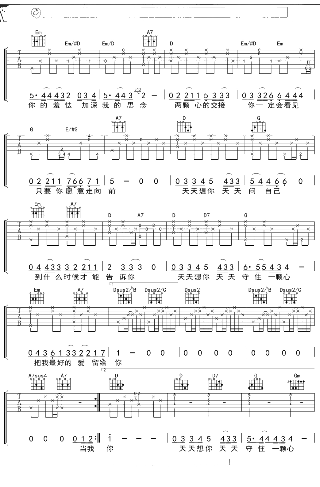 陈绮贞《天天想你》吉他谱 弹唱六线谱吉他谱