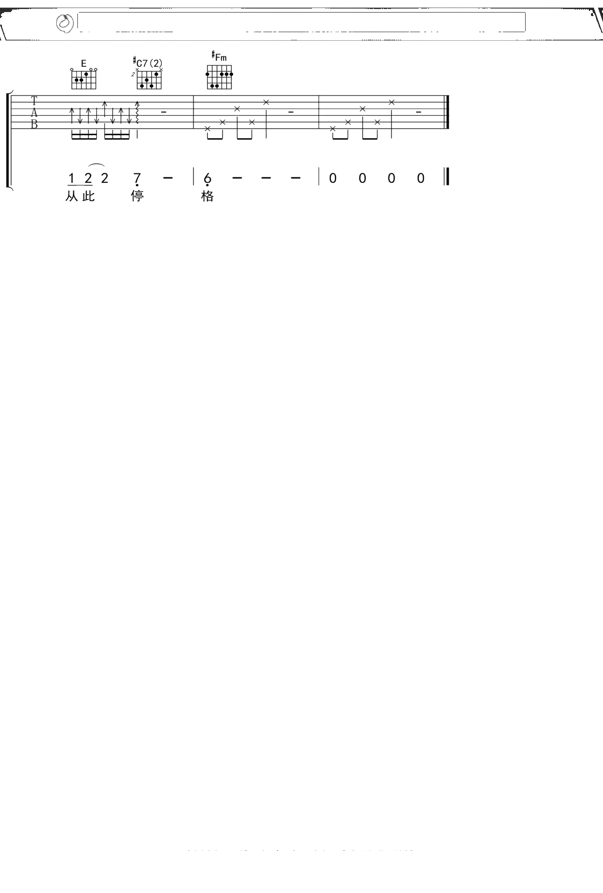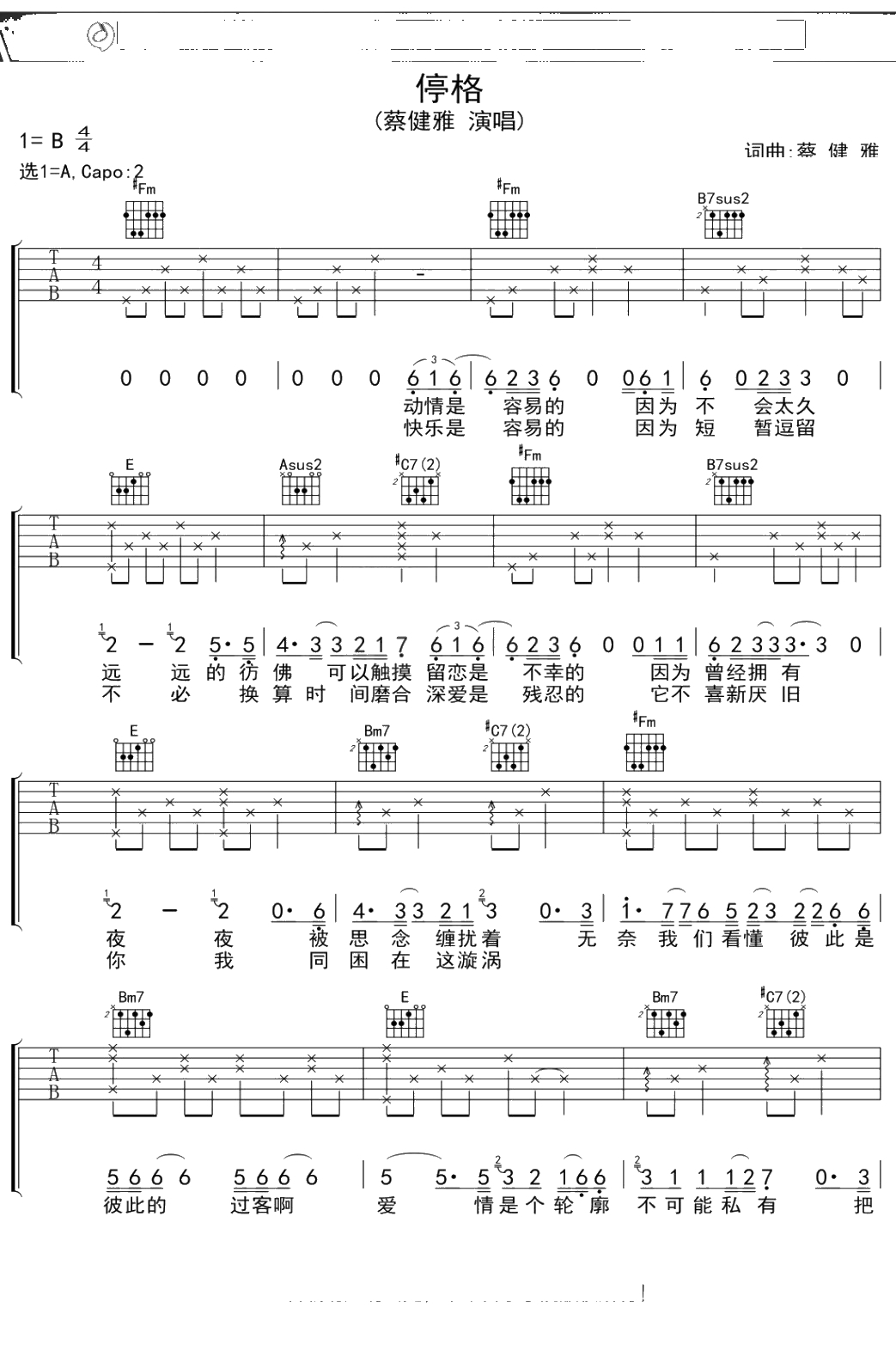 蔡健雅《停格》吉他谱 弹唱六线谱吉他谱