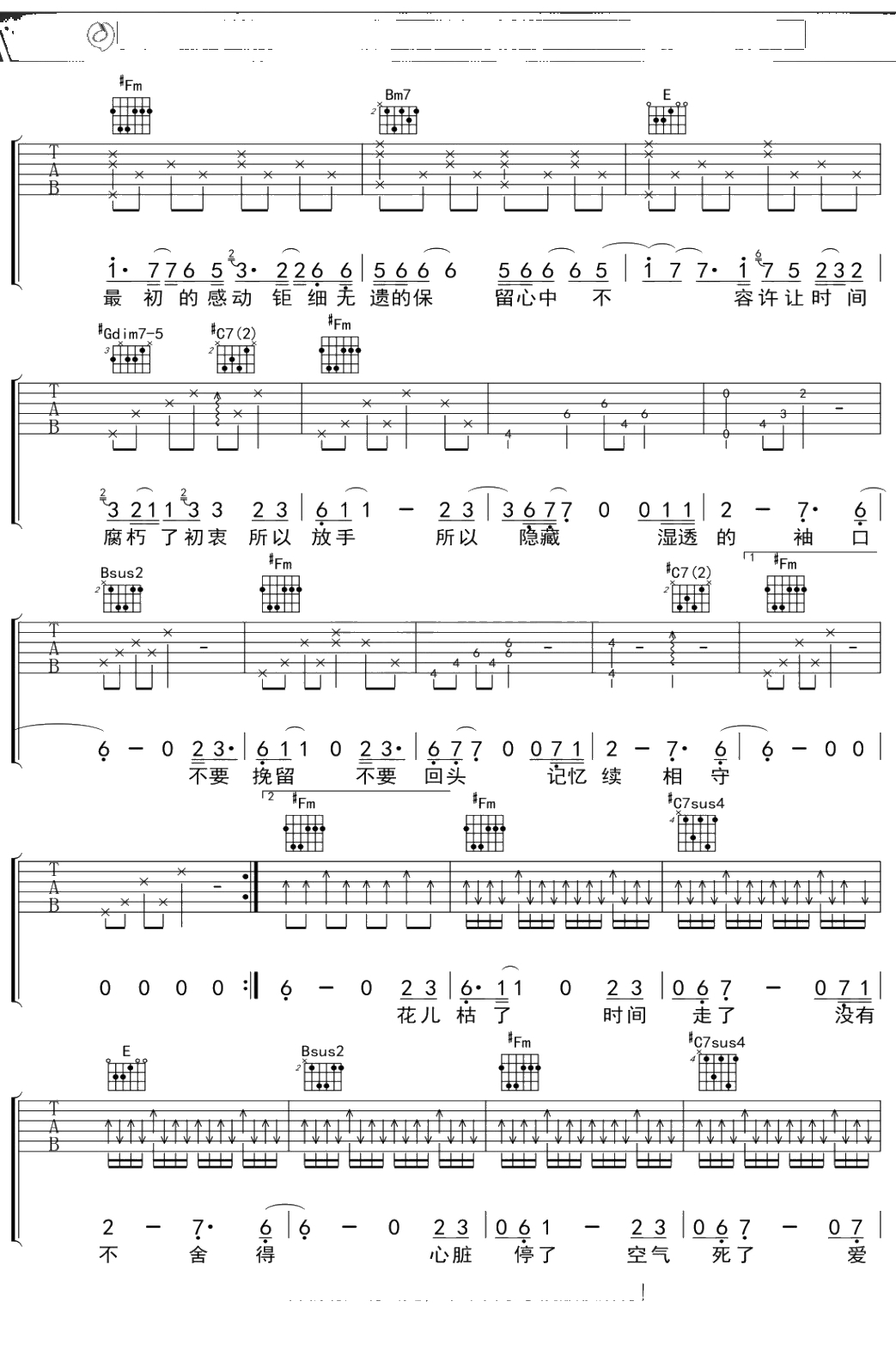 蔡健雅《停格》吉他谱 弹唱六线谱