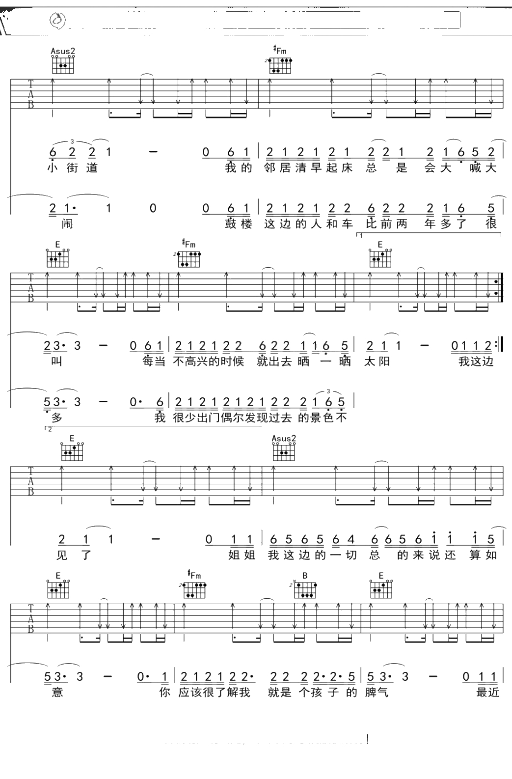 赵雷《未给姐姐递出的信》吉他谱 弹唱六线谱
