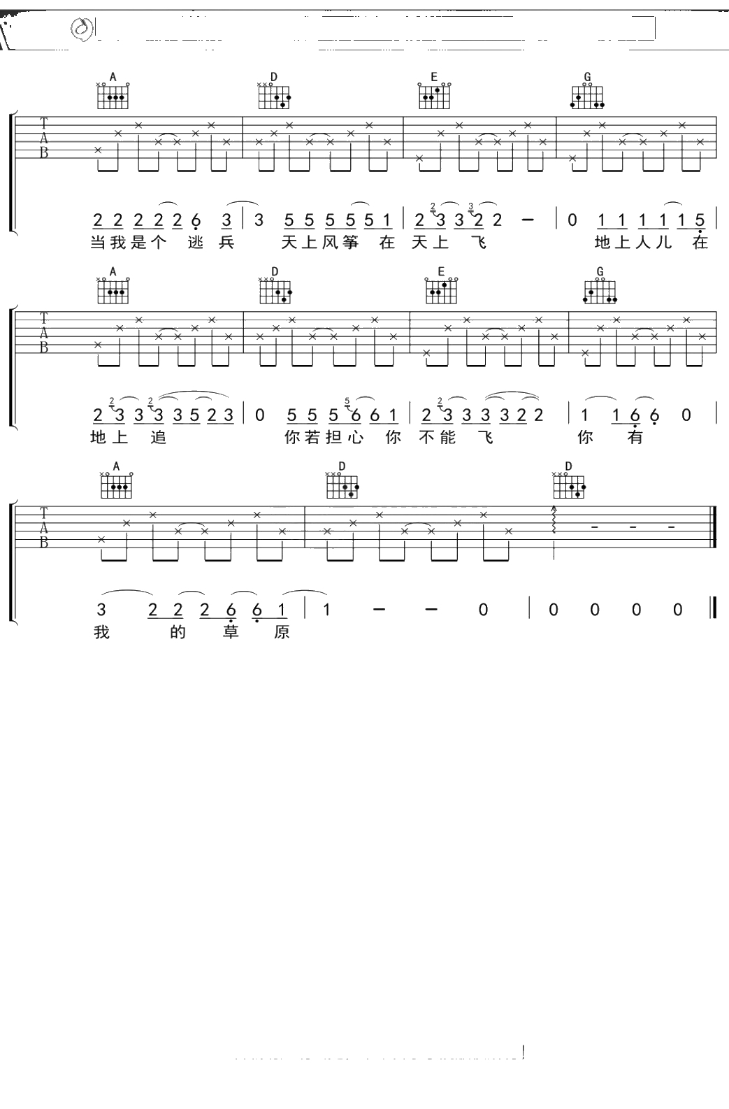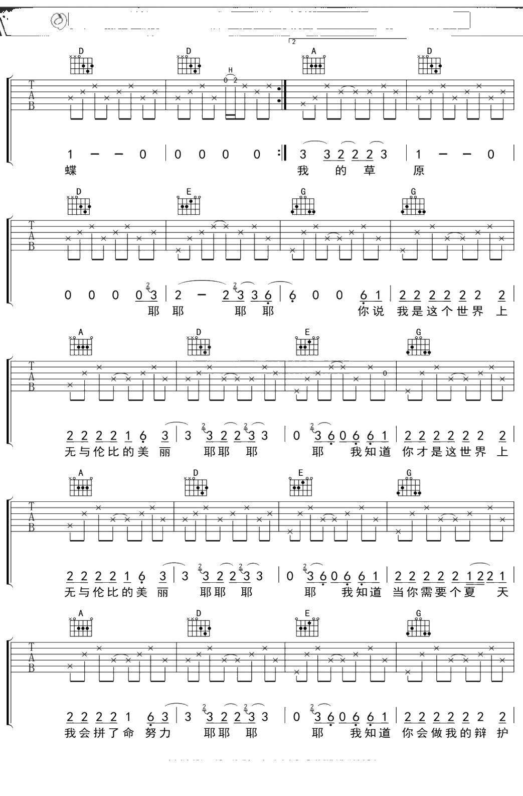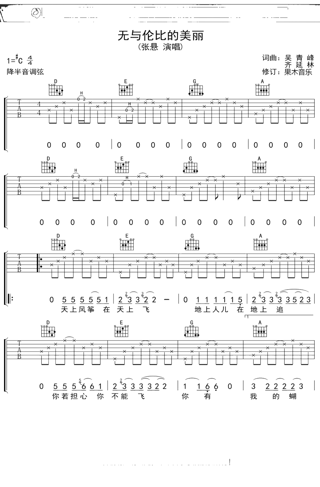 苏打绿《无与伦比的美丽》吉他谱 弹唱六线谱
