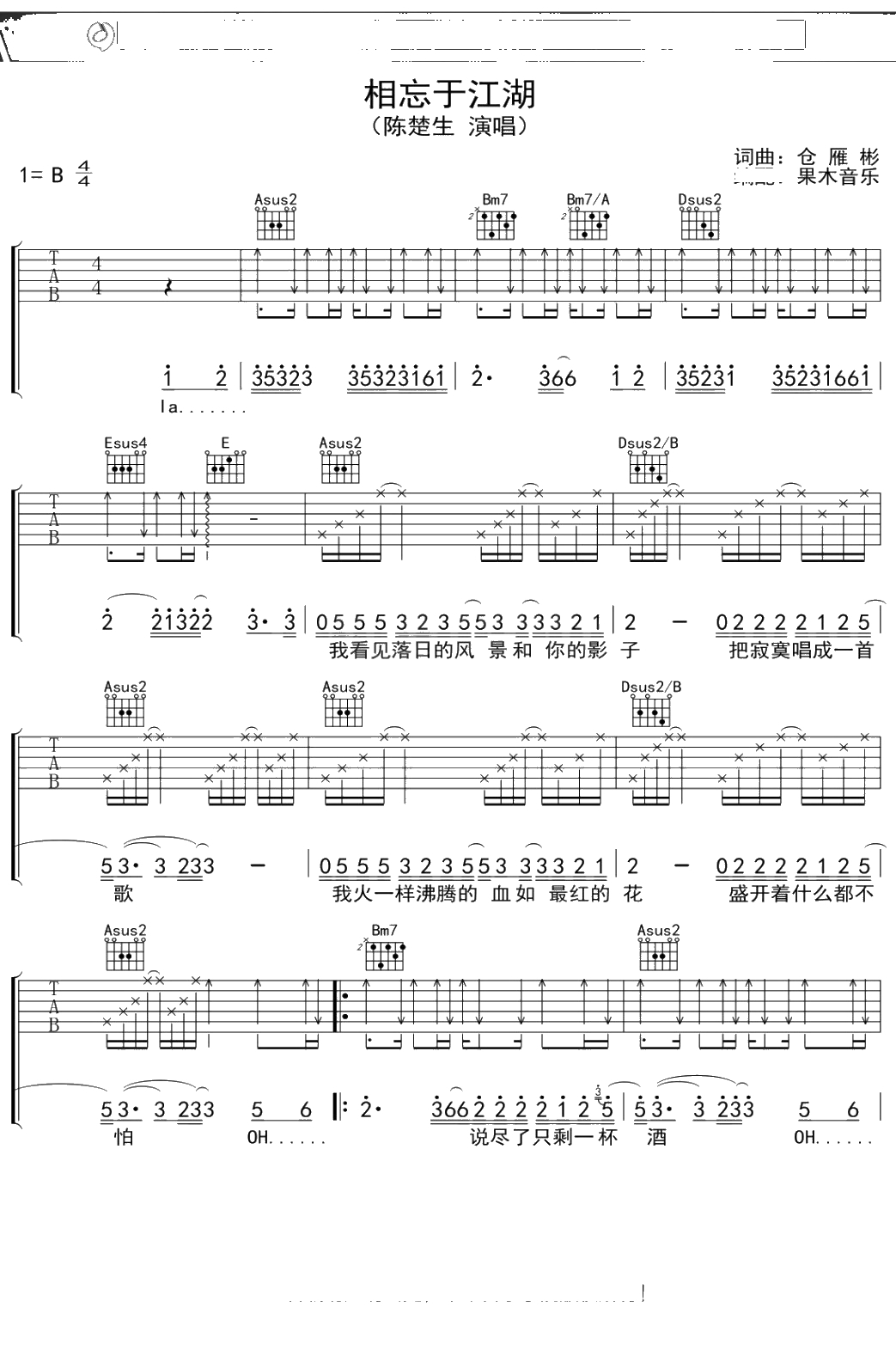 陈楚生《相忘于江湖》吉他谱 弹唱六线谱