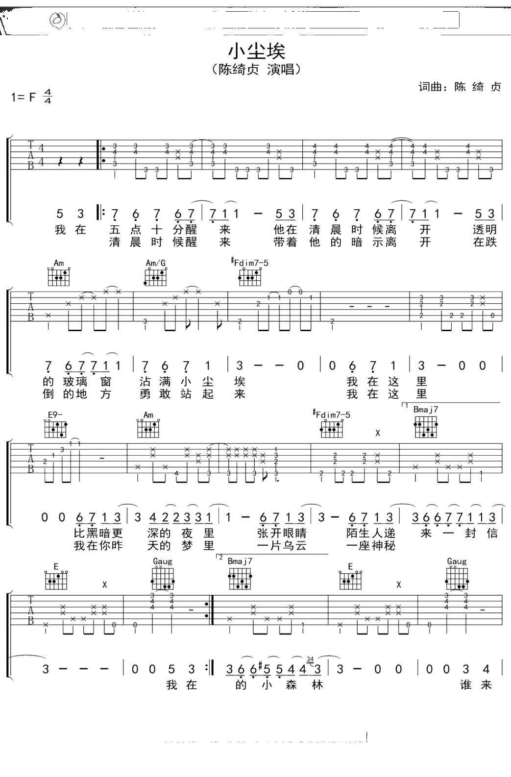 陈绮贞《小尘埃》吉他谱 弹唱六线谱