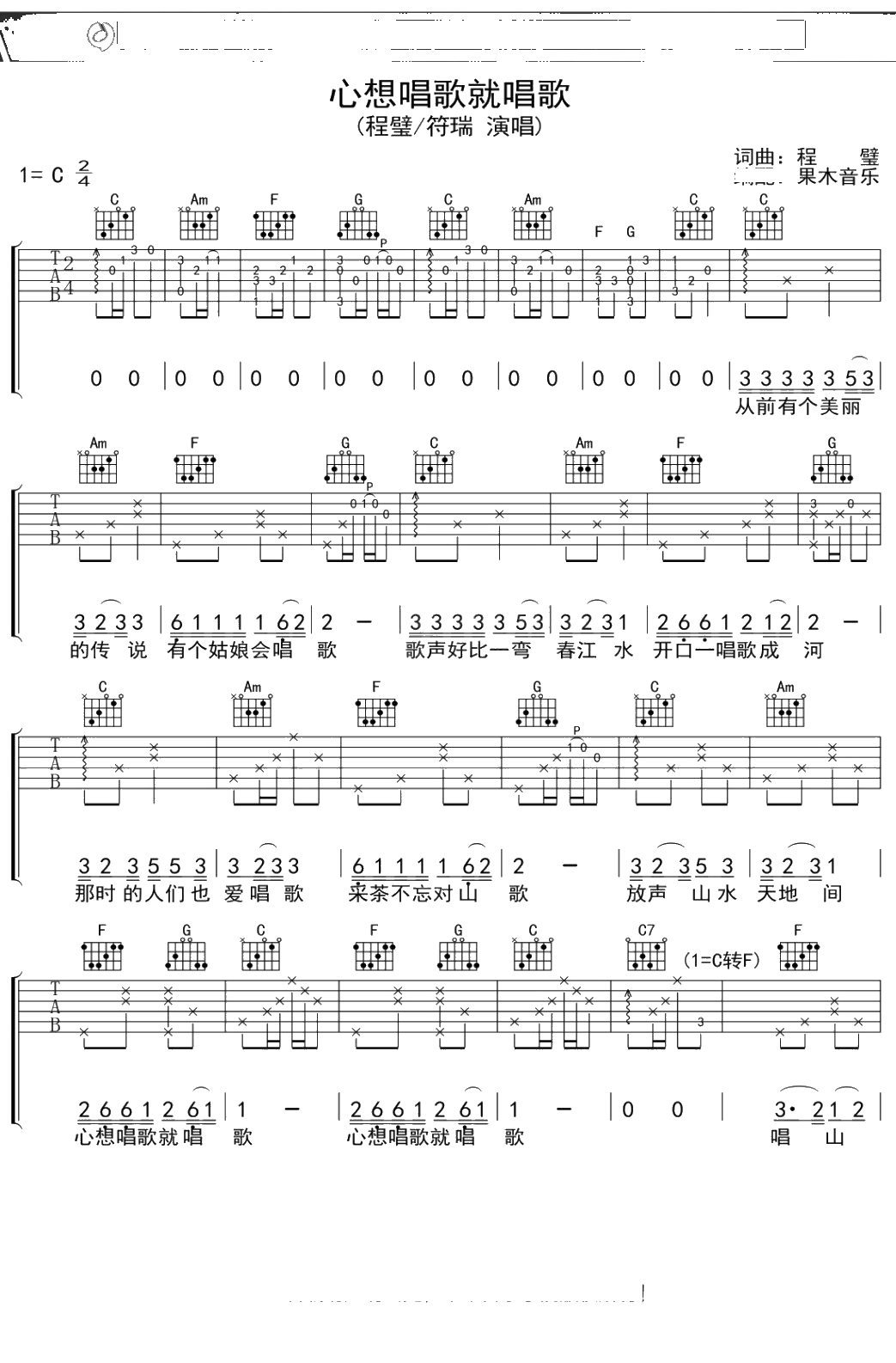 程璧《心想唱歌就唱歌》吉他谱 弹唱六线谱吉他谱