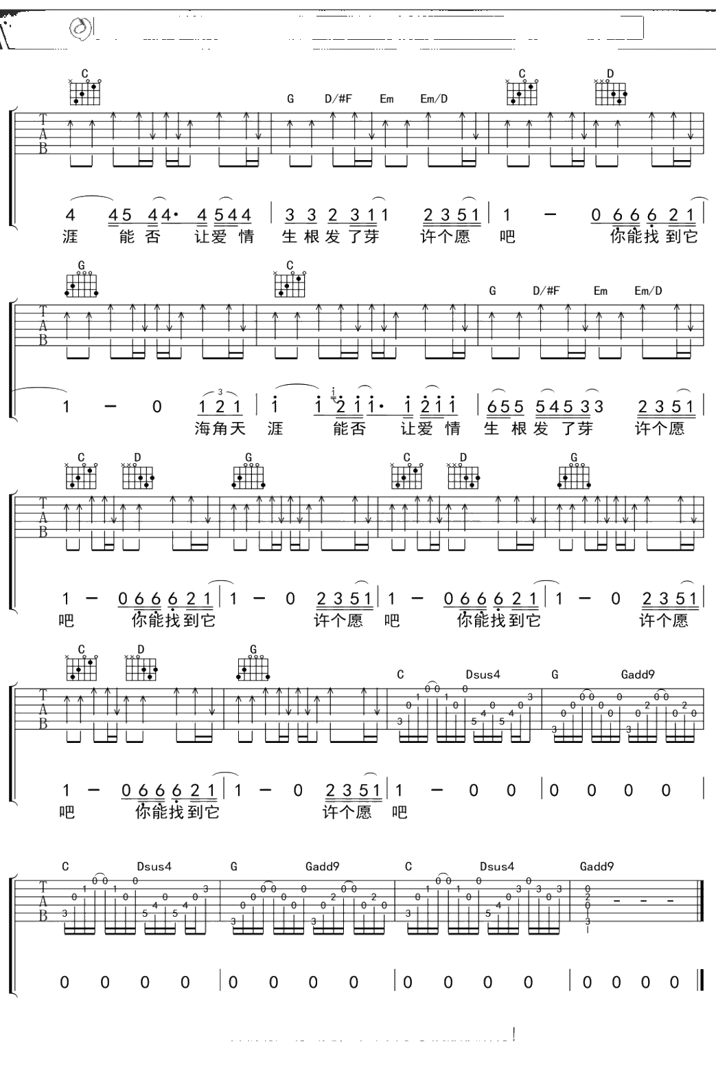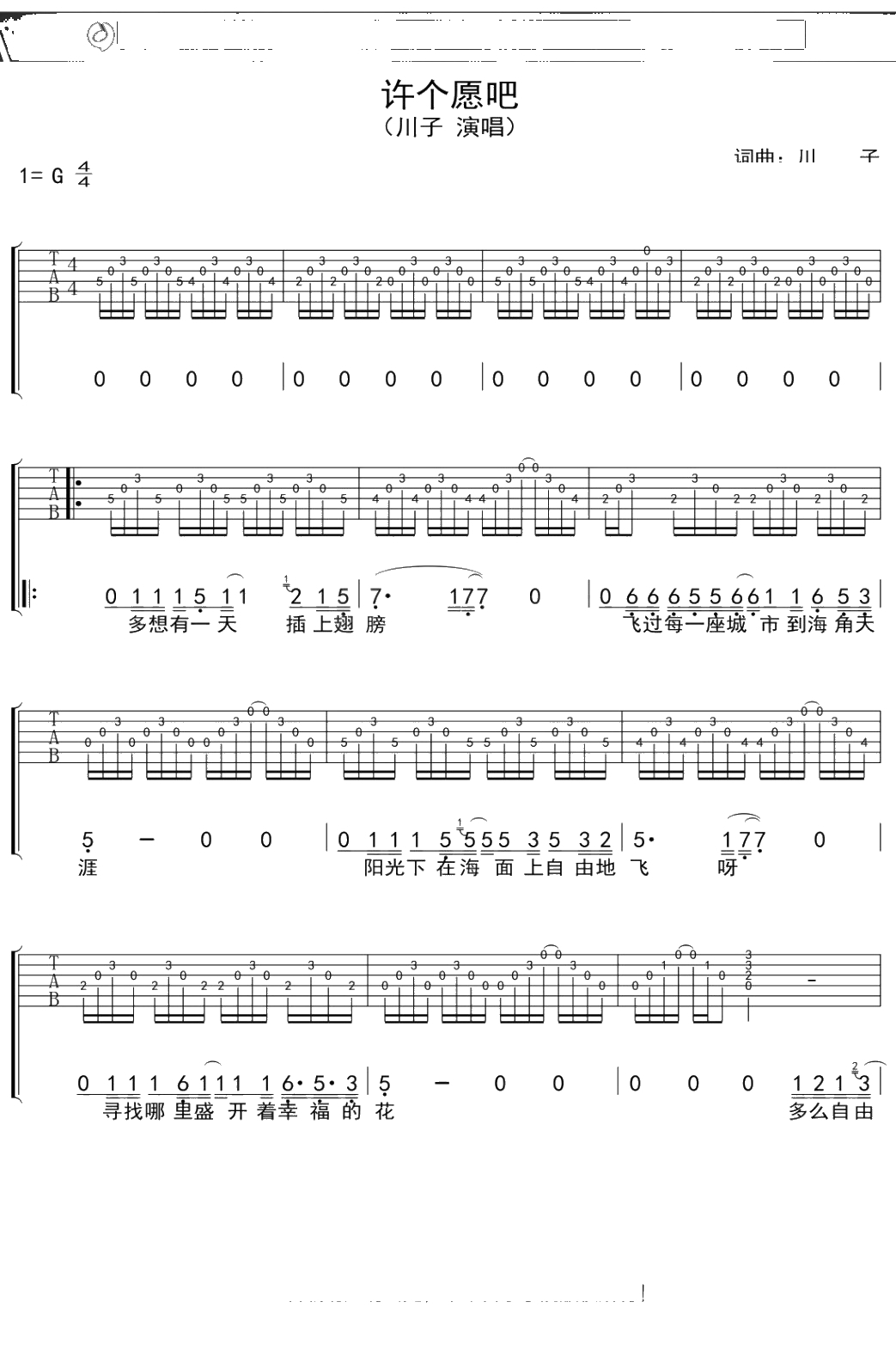 川子《许个愿吧》吉他谱 弹唱六线谱