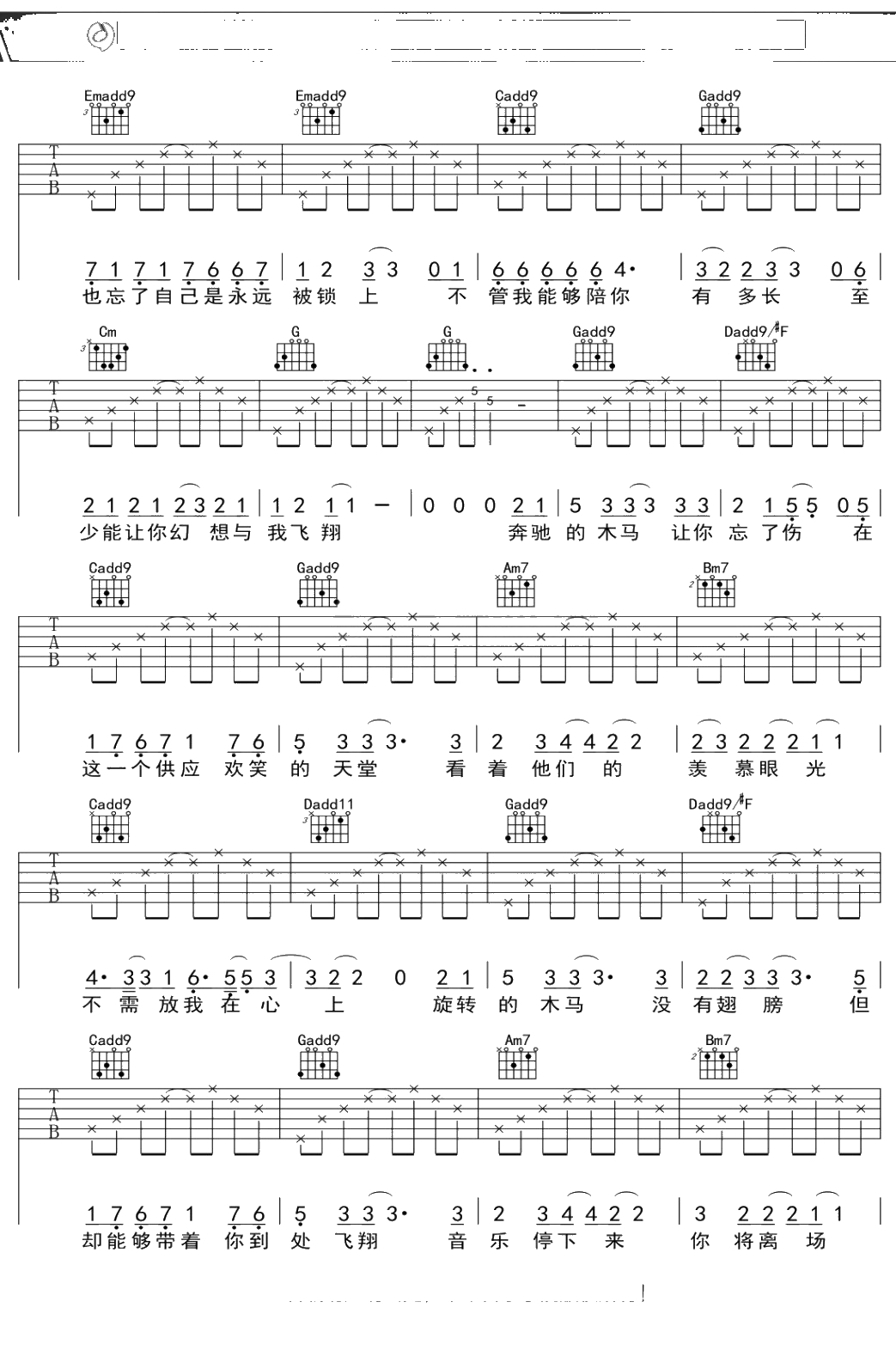 王菲《旋木》吉他谱 弹唱六线谱吉他谱