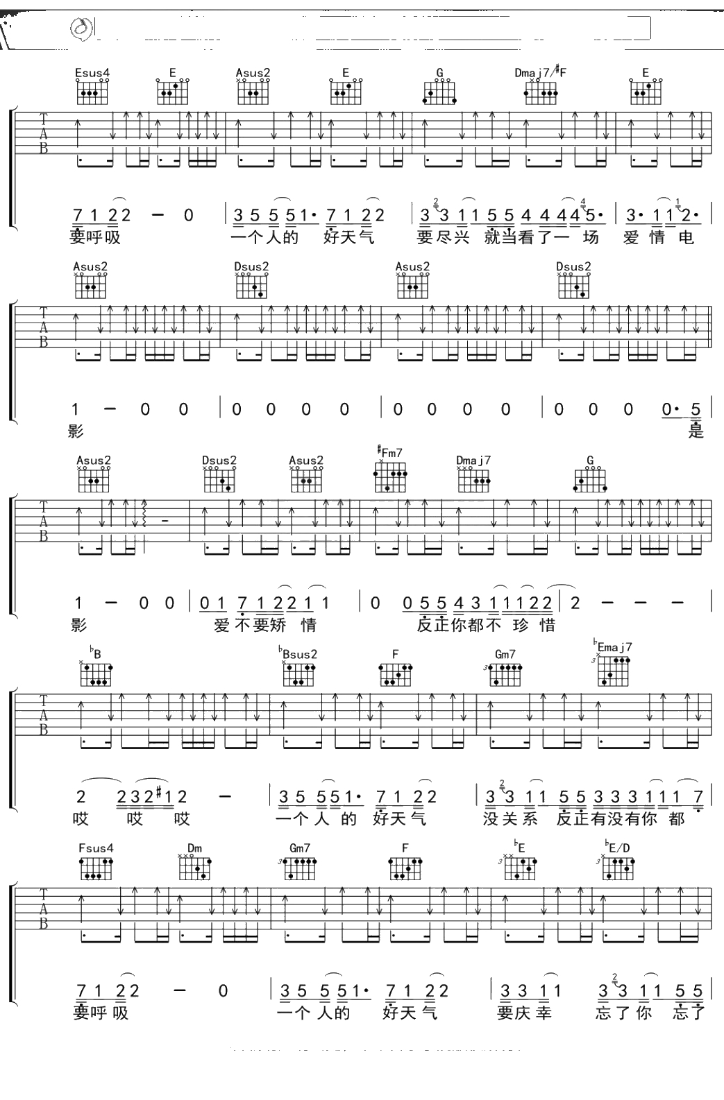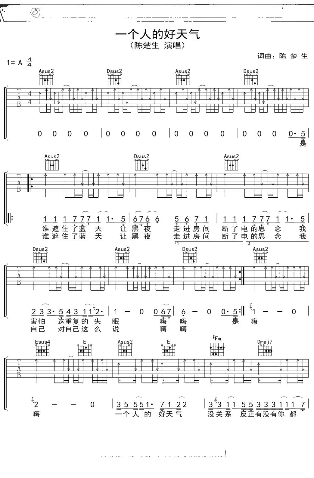 陈楚生《一个人的好天气》吉他谱 弹唱六线谱