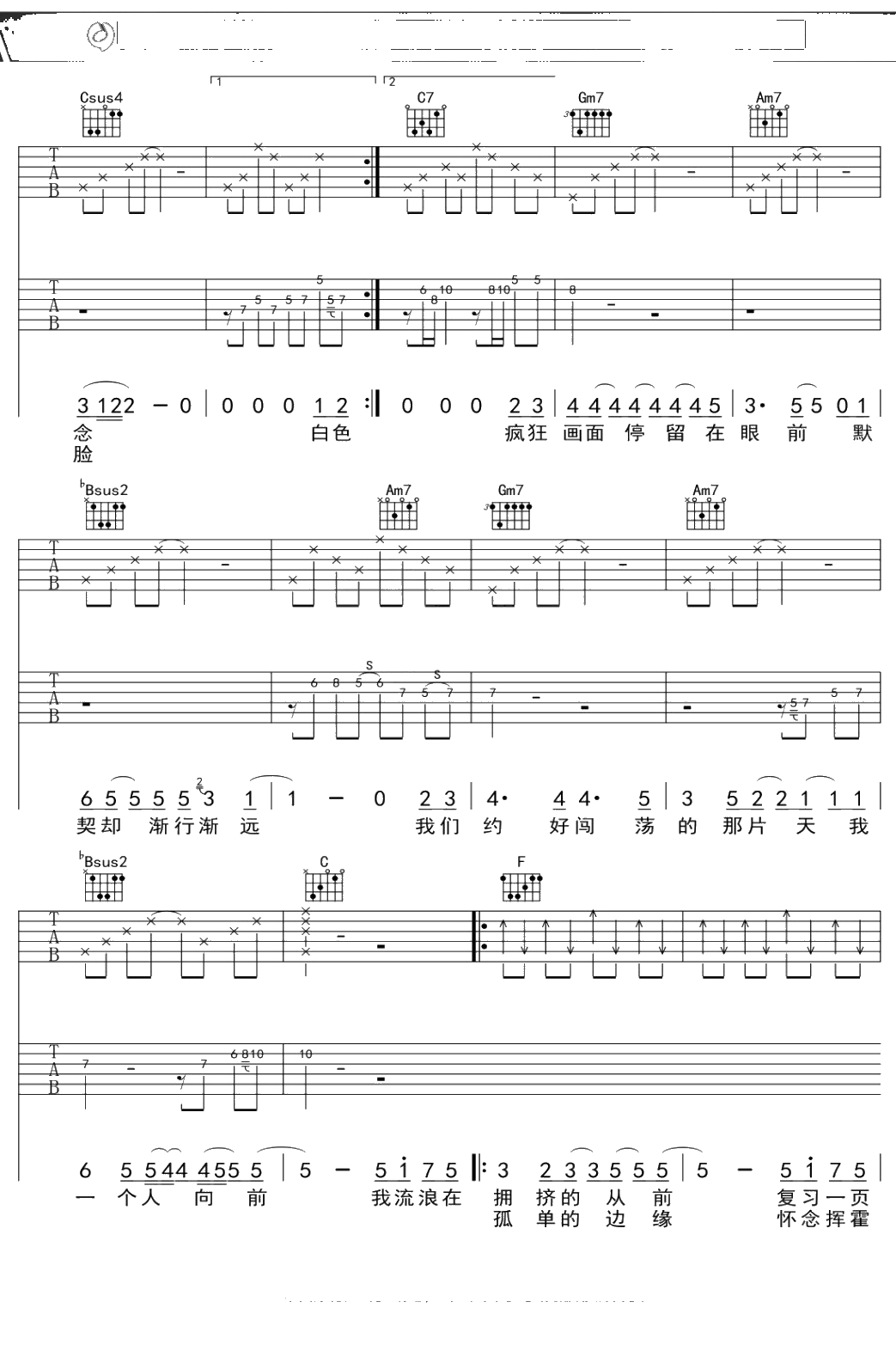 飞轮海《一个人流浪》吉他谱 弹唱六线谱吉他谱