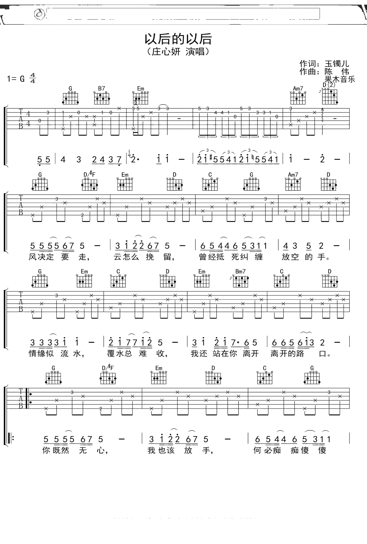 庄心妍《以后的以后》吉他谱 弹唱六线谱吉他谱