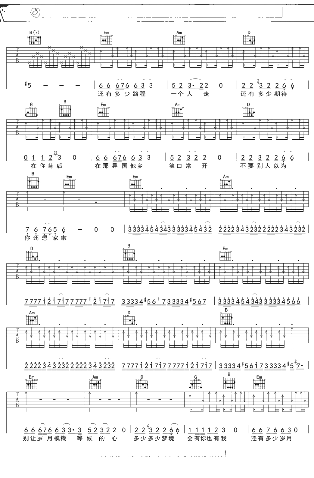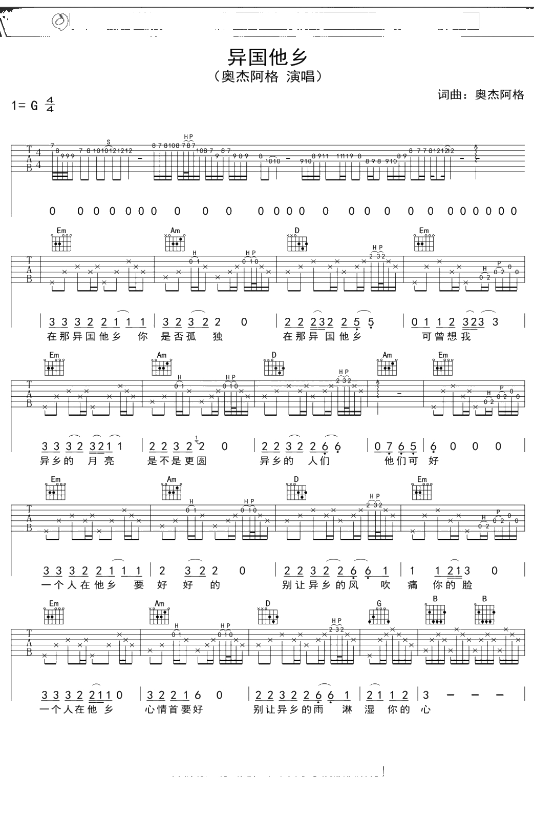 奥杰阿格《异国他乡》吉他谱 弹唱六线谱吉他谱