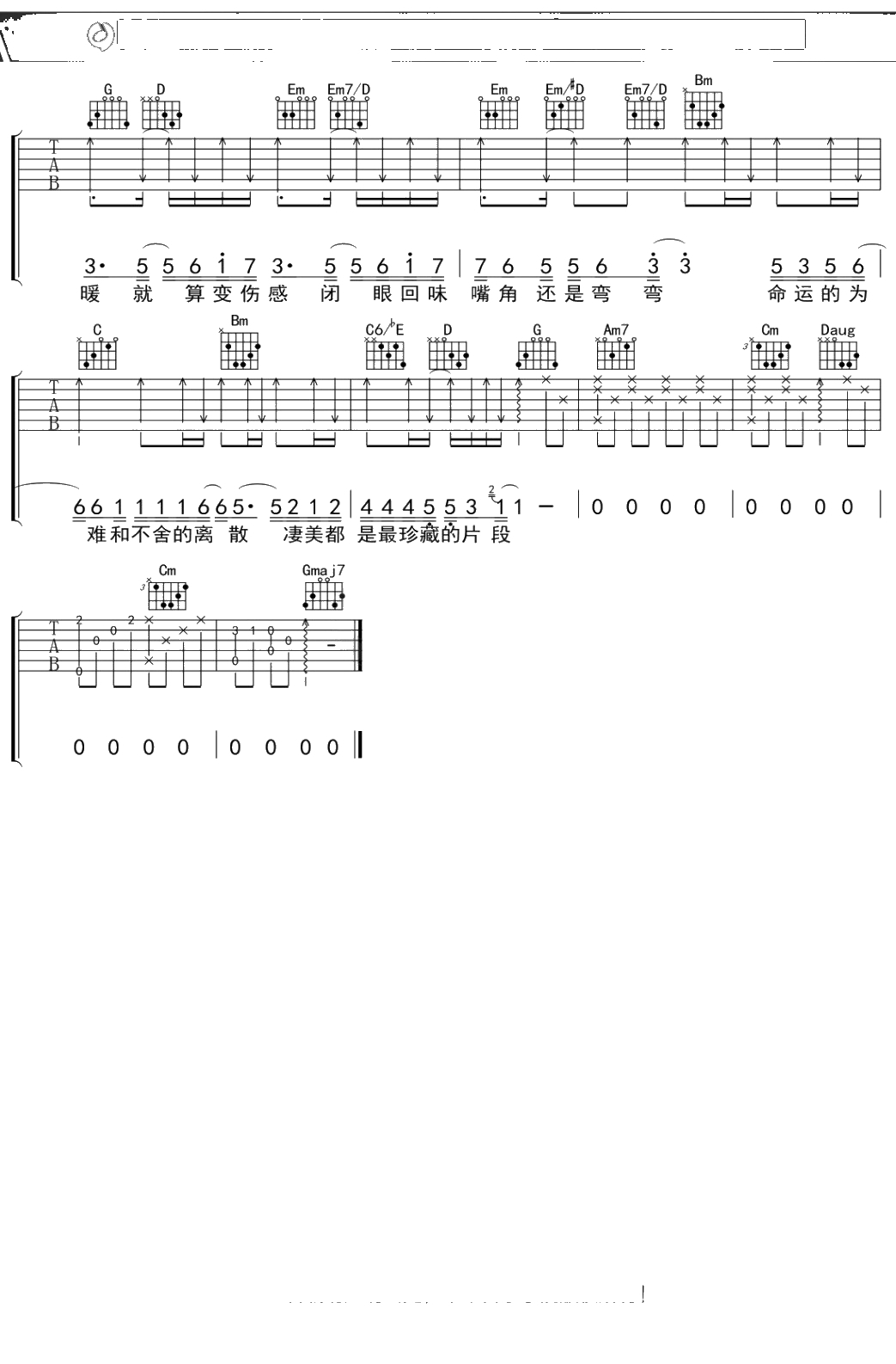 陈楚生《拥抱的温暖》吉他谱 弹唱六线谱吉他谱