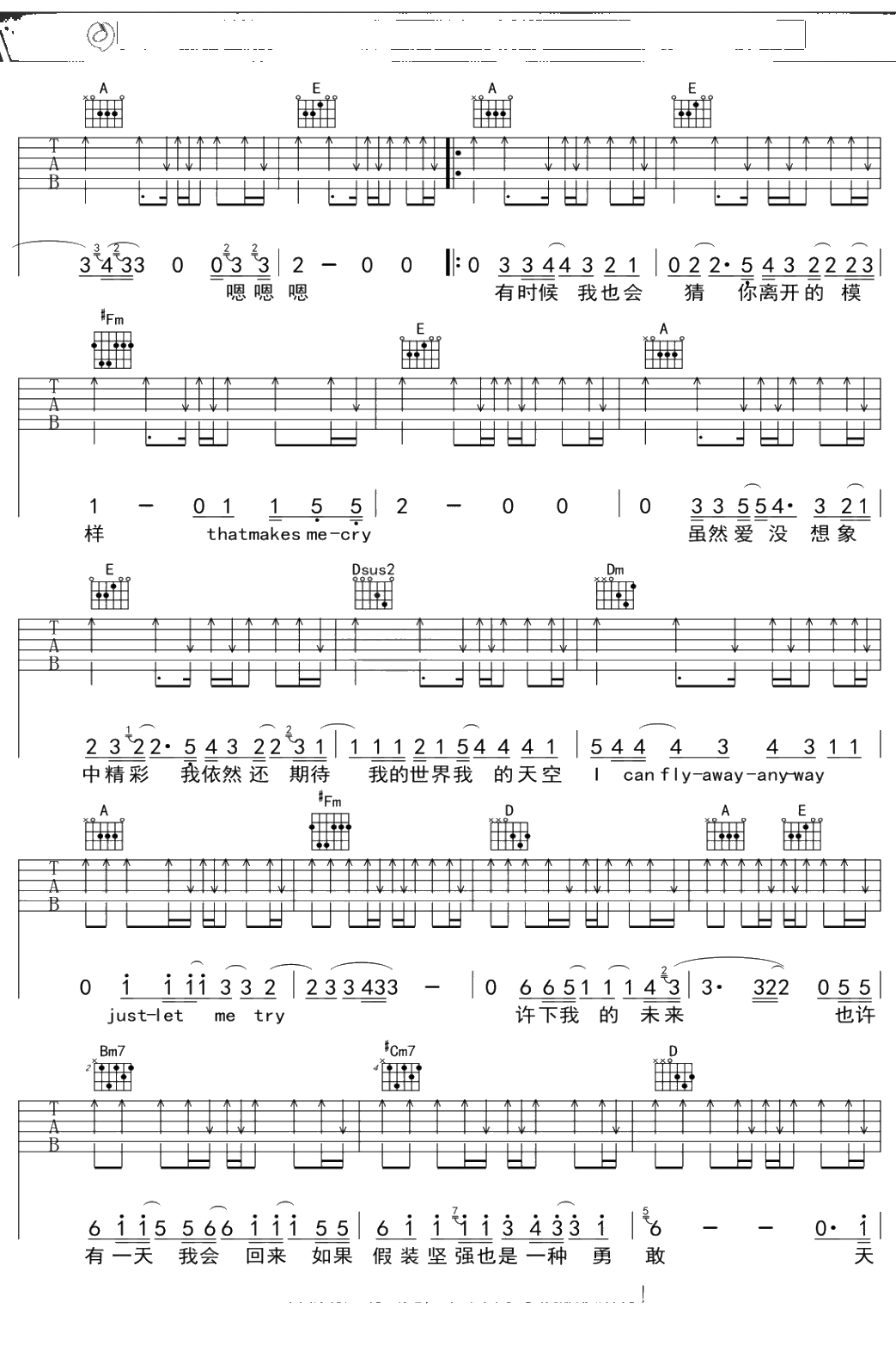 丁香、晓晓《有一天我会回来》吉他谱 弹唱六线谱吉他谱