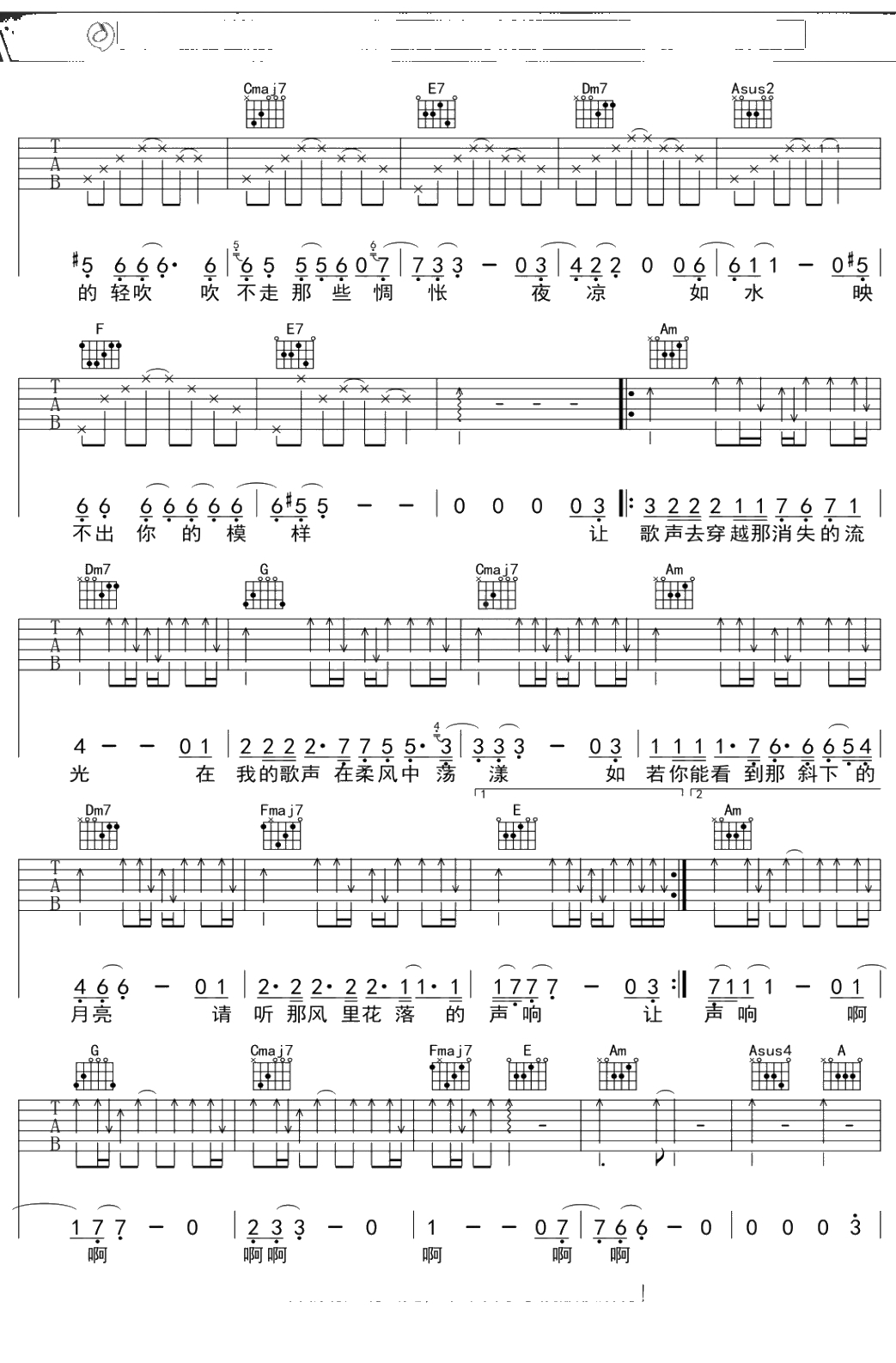 关燕仪《月光》吉他谱 弹唱六线谱吉他谱