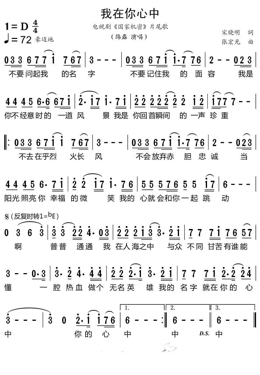 我在你心中简谱-韩磊演唱歌曲-小叶子159曲谱简谱