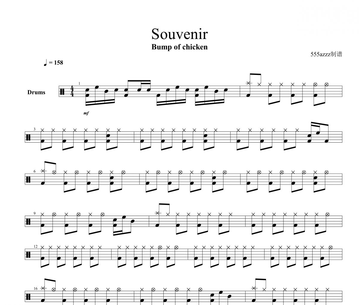 Souvenir鼓谱 Bump of chicken《Souvenir》架子鼓|爵士鼓|鼓谱+动态视频-视频演示