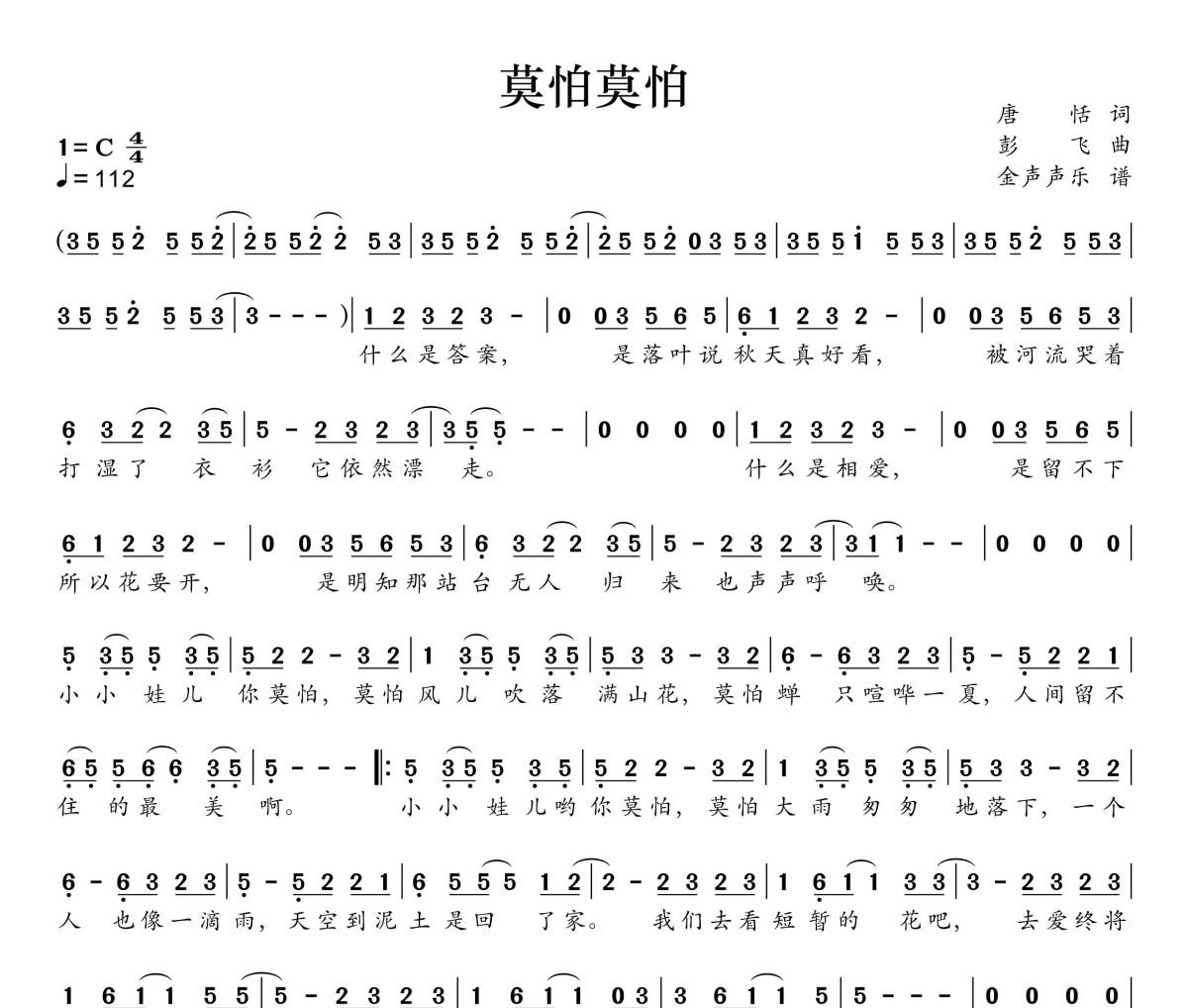 莫怕莫怕简谱 任素汐《莫怕莫怕》简谱+动态视频-视频演示
