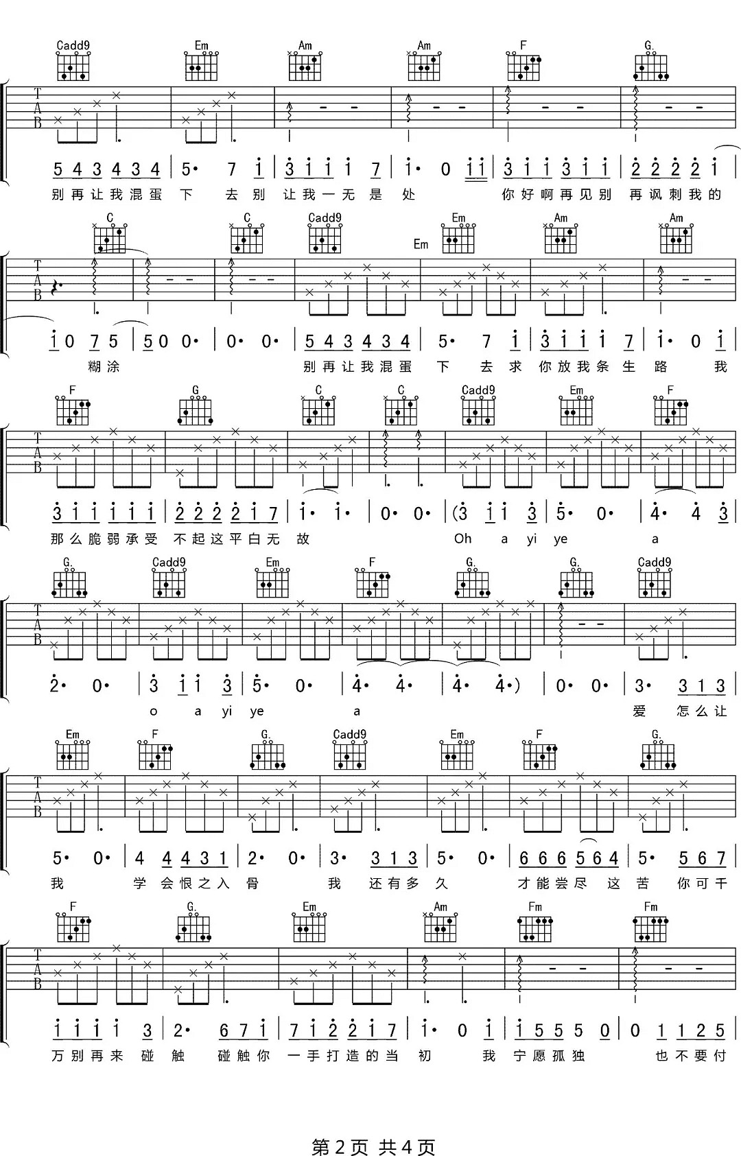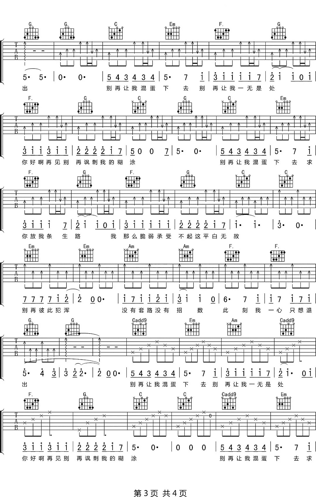 焦迈奇《混蛋》吉他谱_弹唱谱_六线谱_指弹谱_C调